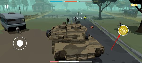 3、右下角黃色小圓圈,點擊開火打擊僵尸。