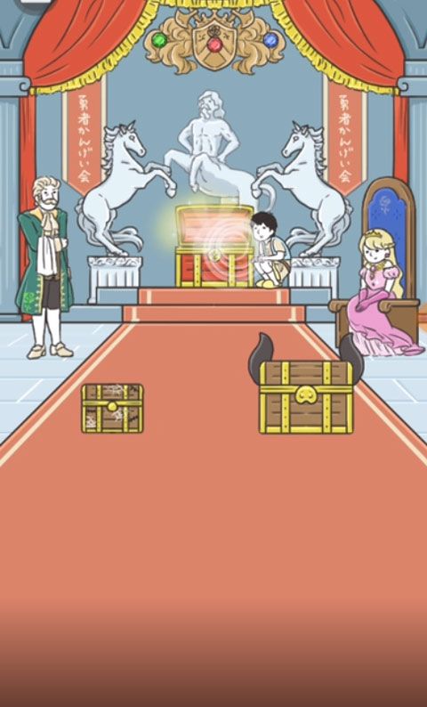 將三顆寶石按照正確位置放置后,原本國王的位置會出現(xiàn)一個寶箱,點擊寶箱即可換裝過關(guān)。