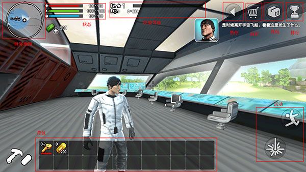 4、睡覺、吃飯、喝水、休息,甚至在電腦上玩小游戲,但首先要蓋房子,一開始它可以是一個(gè)由廢料制成的簡單避難所,但不要停下來,找到更多的材料來制作,你可以將簡單的避難所變成一個(gè)未來派的基地,使用您的終極創(chuàng)意技能,打造一座擁有數(shù)百座未來主義房屋的夢想之城!