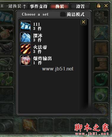 11/1跟新到作者最新v3.22;移除了多余的正式服功能項;添加了套裝信息顯示在鼠標提示的選項;為帶有熱鍵的套裝添加戰(zhàn)斗切換