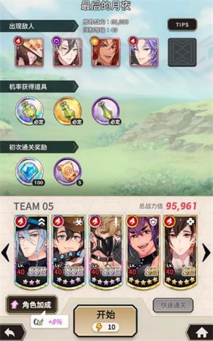1、陣容角色:1號(hào)位:SR墨菲滿潛,2號(hào)位:SR奧利文8潛(點(diǎn)滿),3號(hào)位:南瓜狼9潛(差1個(gè)HP點(diǎn)滿),4號(hào)位:SR八云 11潛(點(diǎn)滿),5號(hào)位:月昆 滿潛。