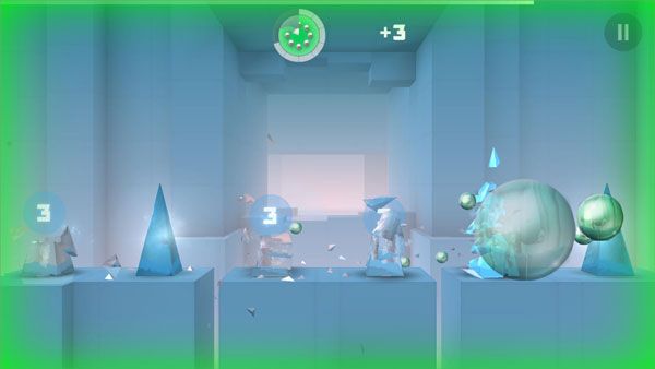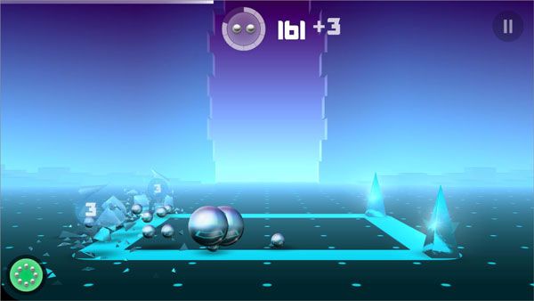 3、游戲有藍(lán)色錐形和紫色菱形等玻璃體的存在,玩家可以通過打碎它們來獲取不同數(shù)目的彈珠;