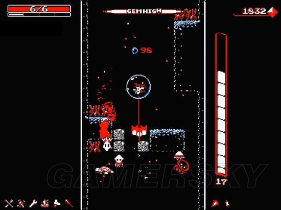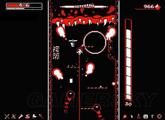 雖不如其他游戲色彩豐富,但值得一提的是墜落深井的畫面特效處理的非常棒,隨著滑板鞋子彈打擊到地板或者是怪物身上時,游戲屏幕會自動跟著抖動,而怪物則是像煙花一般瞬間爆炸,酷炫的效果是這款像素游戲給很多玩家們留下的第一感覺。