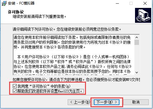 2、雙擊FC模擬器exe安裝文件,進入安裝向?qū)Ы缑妫c擊下一步;