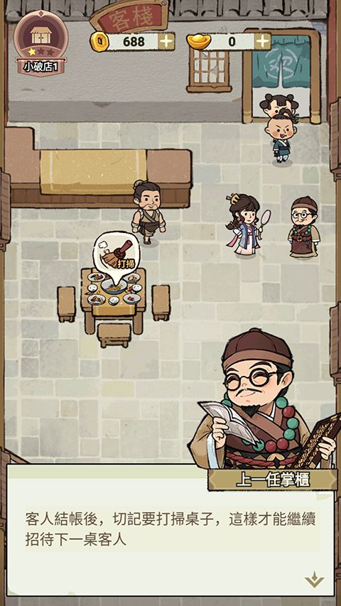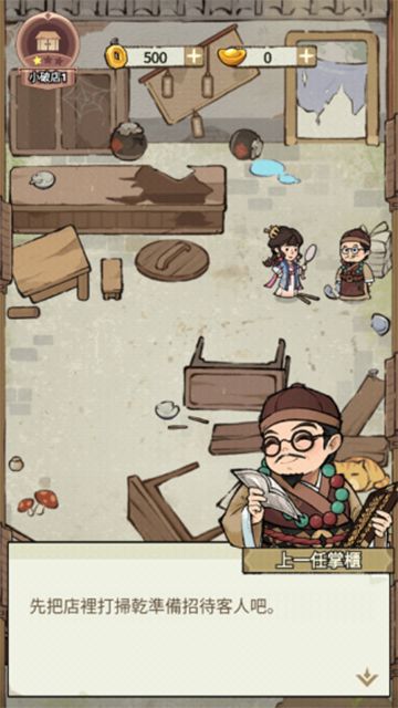 1、我在江南開客棧游戲整體玩法還是較為簡單的,玩家一開始只需要將屋子打掃干凈。