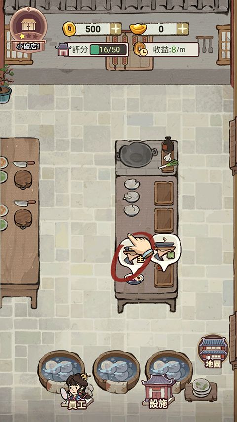 3、來顧客就點擊他們頭像的標記去廚房準備飯菜。