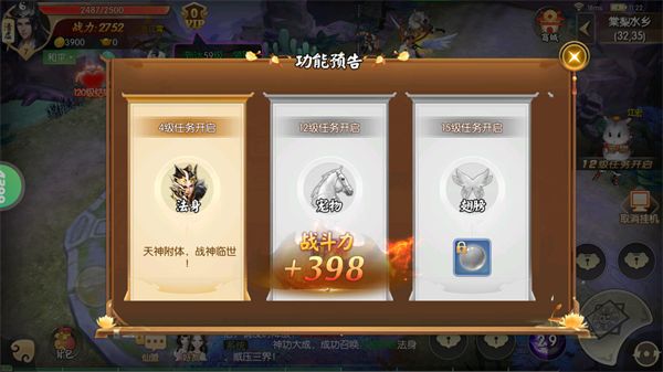 4、另外游戲內(nèi)提供掛機(jī)輔助功能,不需要玩家費(fèi)神費(fèi)力的提升等級(jí)。