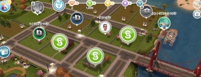 每隔一段時間,當玩家打開城鎮(zhèn)地圖時,就會看到地圖上解鎖的建筑物頂部出現(xiàn)模擬貨幣獎勵,點擊即可領(lǐng)取。這些建筑物不僅包括市民的住宅,還包括公園和商店等建筑物。即使里面沒有公民,他們?nèi)匀粫@得獎勵。