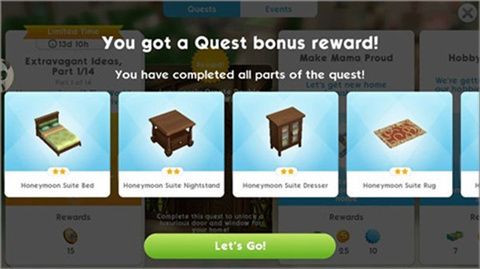1、第一次結(jié)婚得做婚禮任務(wù),限時做完會有一套家具獎勵。