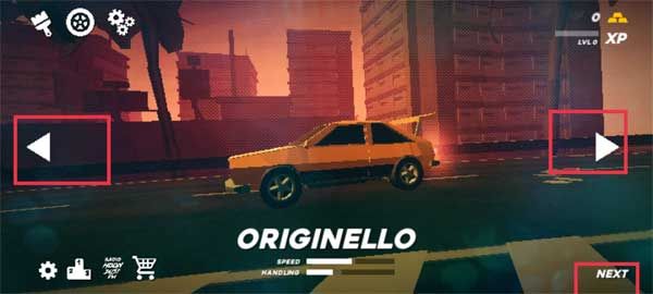 1、游戲開局的第一步就是選擇自己喜歡的車進(jìn)入賽道,通過左右按鈕選擇好車輛之后點(diǎn)擊右下角的Next。