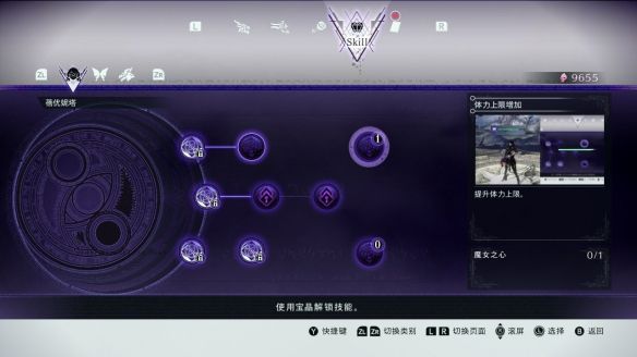 技能界面,玩家可以花費(fèi)寶晶習(xí)得新的技能,技能頁面會(huì)根據(jù)【武器-魔獸】來進(jìn)行分類,玩家可以按Y鍵來進(jìn)行快捷挑選分類。