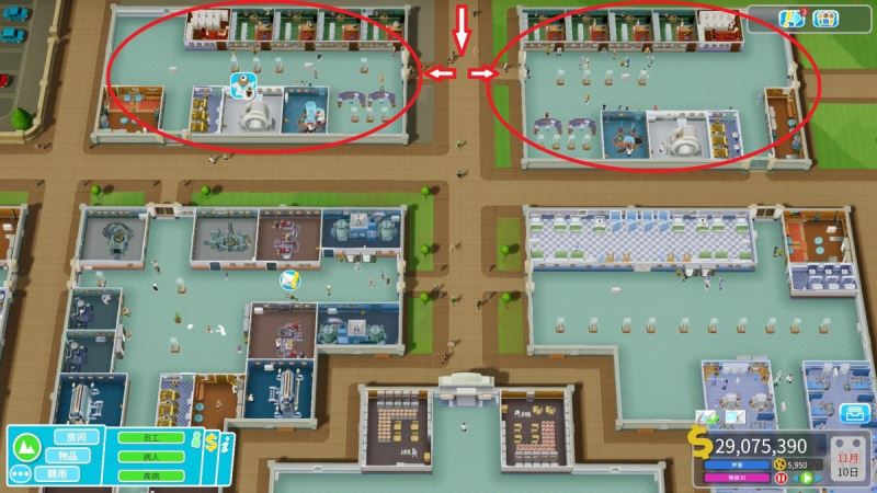(2)前期要研究或者培訓的關卡,那就全科+藥房+廁所+休息室+培訓/研究。