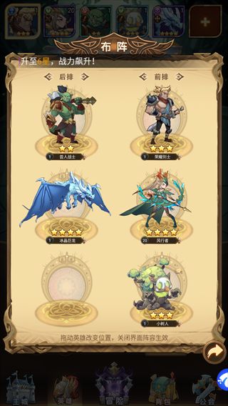 5、點擊冒險進入冒險關卡,能夠快速升級自己的英雄和自我經(jīng)驗,讓自己快速成長!