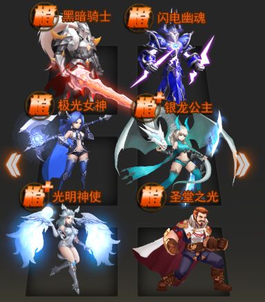 3、黑暗騎士、閃電幽魂、極光女神、轉(zhuǎn)銀龍公主、光明神使、圣堂之光