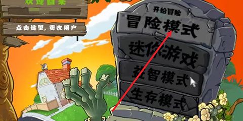 1、打開植物大戰(zhàn)僵尸e版支線點擊冒險模式進(jìn)入。