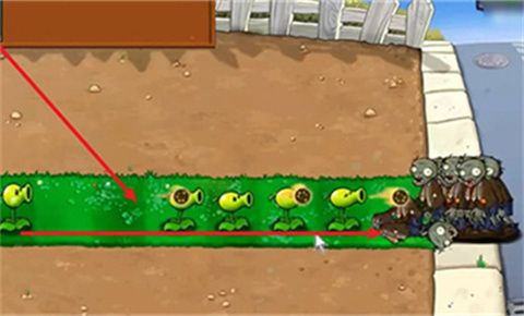3、然后在草地上放一排豌豆射手攻擊入侵的僵尸。