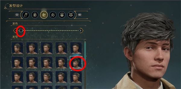 發(fā)型方面:發(fā)色設(shè)置為深棕色,發(fā)型選第二行第五個(gè)。