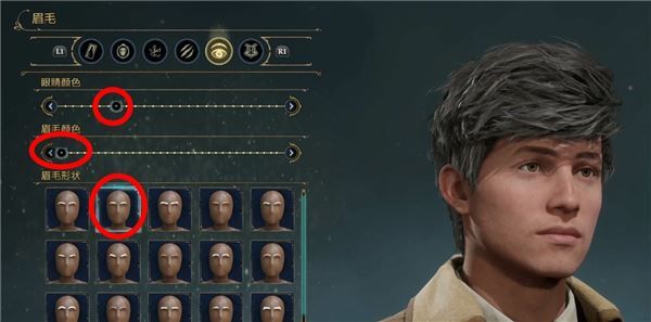 對(duì)于眉毛,眼睛顏色設(shè)為棕色,眉毛顏色黑色,眉形選擇第一行第二個(gè)。