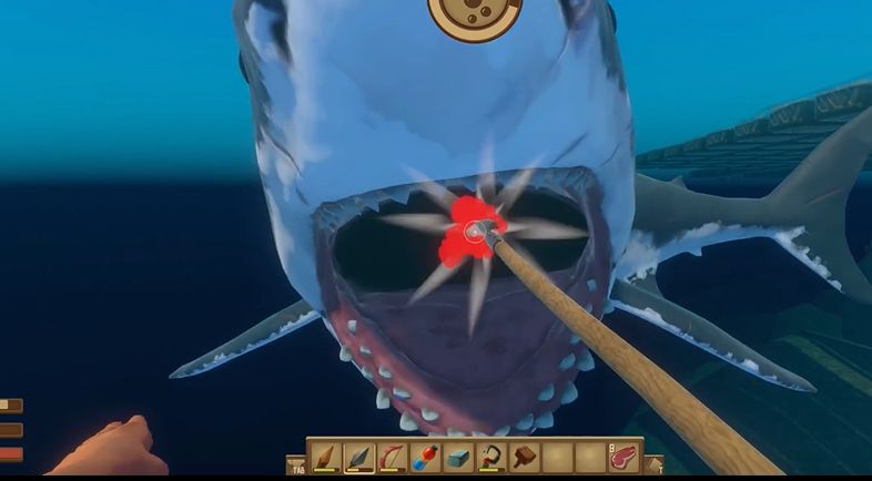 3、海上很難獲得資源:玩家必須確保使用可靠的釣鉤捕獲任何漂浮的碎片,并在可能的情況下清除海浪下方的珊瑚礁和上方的島嶼。但是,口渴和饑餓并不是海洋中唯一的危險(xiǎn)……提防下決心結(jié)束航行的食人鯊!