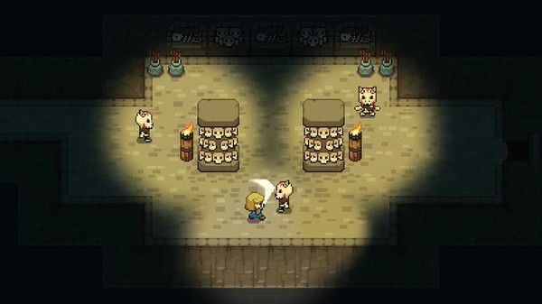 塞爾達(dá)已然可以說是一類平面RPG的玩法,在一塊塊大路上不斷探索,解鎖新的武器和功能,進(jìn)入一場(chǎng)場(chǎng)緊張刺激的BOSS戰(zhàn),在游戲提供的大世界中展開難忘的冒險(xiǎn),就這一點(diǎn)上,本作算是有著不錯(cuò)的完成度,RM無法比擬的精致像素畫面,木質(zhì)的房屋、滴水的山洞、搖曳的麥稈,其畫面表現(xiàn)足以令人滿意,不同地圖隨著劇情的貫穿也有著不錯(cuò)的連貫性。地圖中的解密環(huán)節(jié)算是中規(guī)中矩,大都是按鈕、箱子等傳統(tǒng)藝能,不過礙于游戲體量,本作的深度和地圖總數(shù)仍有提升空間,雖說對(duì)于獨(dú)立游戲而言倒也足夠。