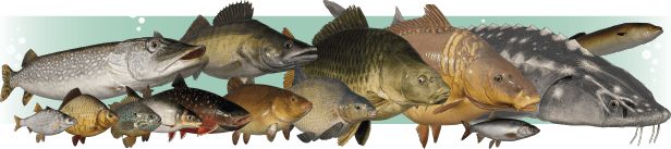 六種稀有魚類:十指金眼鯛、大西洋白姑魚、奧斯特羅格白鮭、綠鯉、白化草魚、黑等鰭叉尾帶魚。