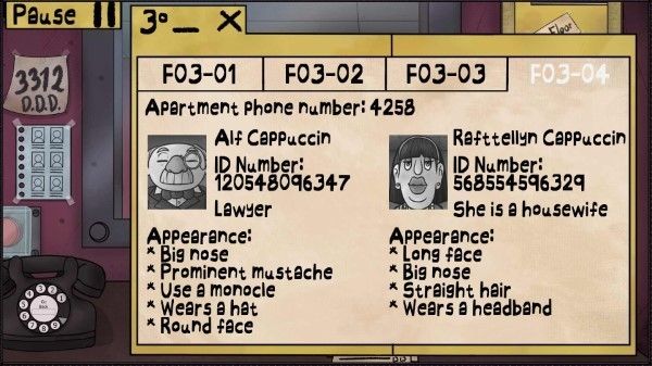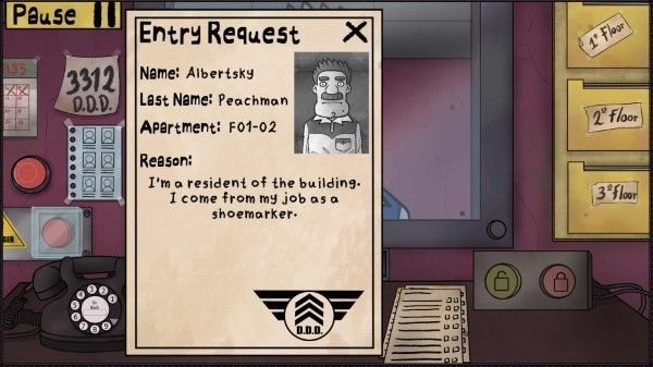 作為建筑物的看門人,玩家的角色由普通的門衛(wèi)變成了保護(hù)租戶的英雄,玩家必須阻止這些冒名頂替者進(jìn)入的企圖。玩家可以通過審查用戶資料,檢查身份證、確認(rèn)公寓號(hào)碼,甚至撥打驗(yàn)證電話來判斷進(jìn)入建筑的是人還是危險(xiǎn)的生物