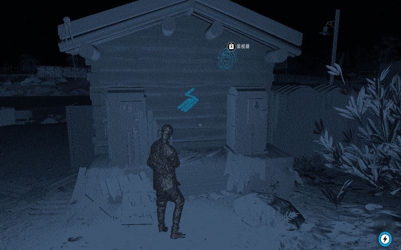 2、第一扇門是鎖著的,用駭客視覺可以看到屋頂上所要解鎖的設(shè)備,來到屋頂駭入設(shè)備,即可跳到下方,打開安全門進入其中。