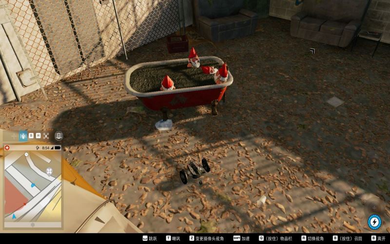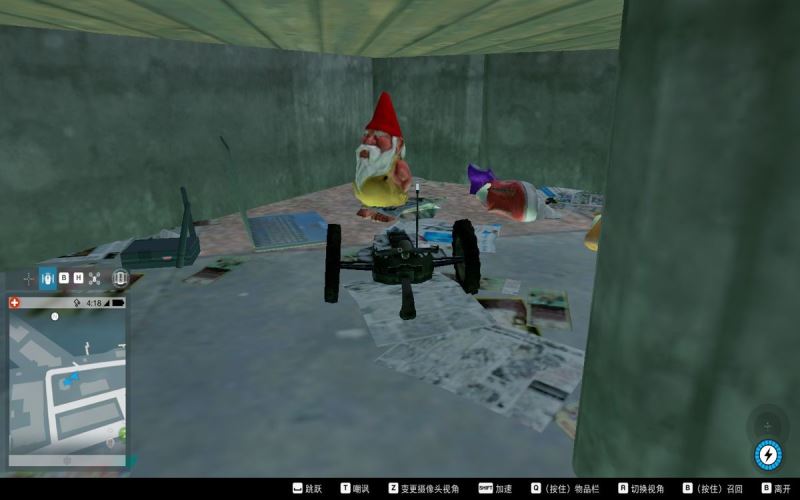 在這個管制區(qū)域,不必搏殺,用小車從大門進入,找到這個狗窩,里面有一個綠色小矮人,按下“E”鍵獲得。