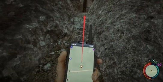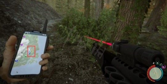 1、電鋸的位置如下圖所示,按照GPS的標注找到地上有一個洞窟,進入后找到地下補給站。