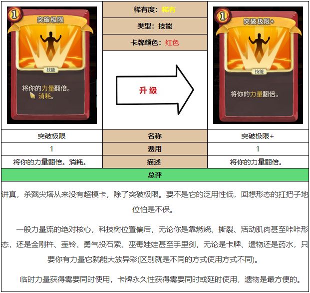 只要一張就夠了升級效果持續(xù)整個游戲,有了這張卡幾乎不需要去鍛造卡牌,也不需要去追求神化。在憤怒狀態(tài)下可以很輕松的達(dá)成效果。升級之后提升傷害。
