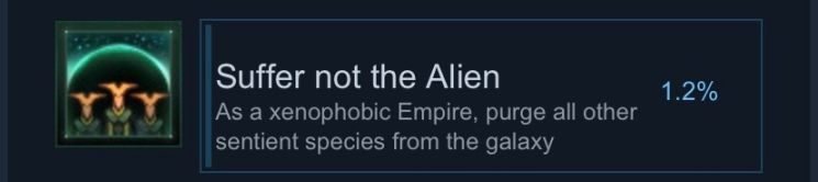如果在游戲設(shè)置中設(shè)置AI帝國數(shù)、墮落帝國數(shù)、掠奪者部落數(shù)、前超光速文明和未開智物種數(shù)均為0,游戲開始時將自動獲得該成就。