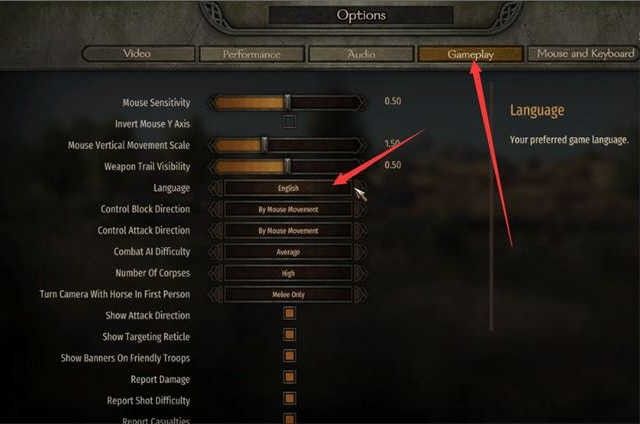 3、最上方選中Gameplay,找到Language下的簡體中文,然后保存游戲。