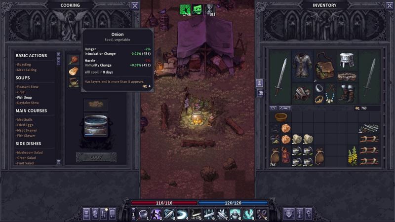 這里的水果、食品小販和屠夫處可以購買各類食物。雜貨商處可以買到裝備、食物、藥品、文獻等等貨物種類比較豐富,前期可以找他買一些銀戒指、銅鏈等初級裝備,錢多了也可以買一些文獻等解鎖技能。前期如果碰到的是【商販被劫】的任務(wù),他可能會不在這里,需要完成任務(wù)救他回來。
