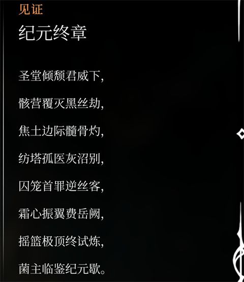收集完成后回到圣歌盟地交任務 再次擊敗蒼白之母 斬殺時會出現(xiàn)分支選項 以此觸發(fā)結局3【縛絲囚神】。