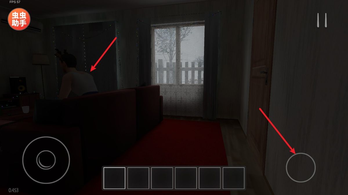 1、游戲中我們的目的是要逃出家門,首先了解一下操作,左側(cè)的搖桿可以控制移動,拖動屏幕就能轉(zhuǎn)換視角了。