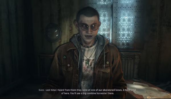 你會(huì)結(jié)識(shí)斯文,他通知我們他的同伴失蹤了,他們最后已知的位置可能是其中一個(gè)被遺棄的基地——當(dāng)前地點(diǎn)西邊的一個(gè)農(nóng)場(chǎng)。我們即刻動(dòng)身前往調(diào)查。