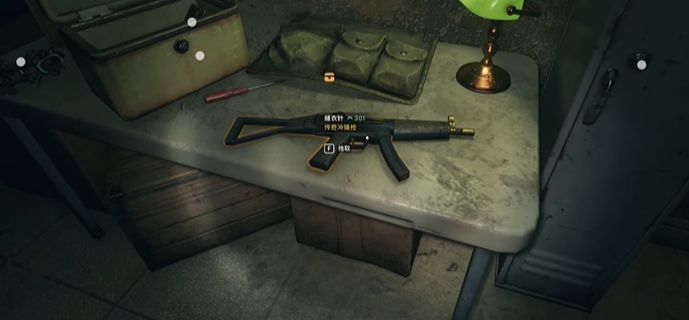 6、后將車庫的電接上,然后注意打開的過程中有一波尸潮。在里面打開困難的門后,即可獲得金色傳奇沖鋒槍。