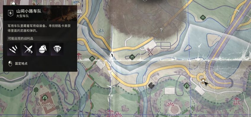 2、在下圖位置獲得B4藏寶圖,然后去修道院。打敗特定喪尸獲得鑰匙卡,然后打開發(fā)電點(diǎn)。