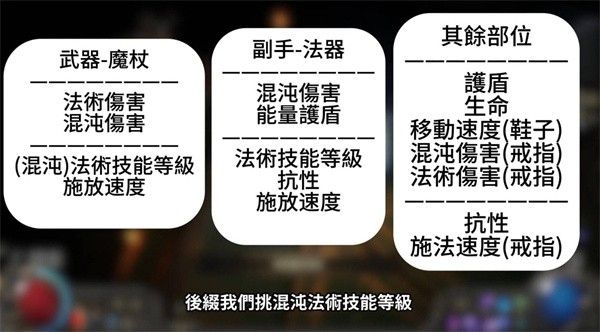 商店刷新后,在搜索欄輸入「混沌|法術(shù)|移動(dòng)|抗性」,可快速定位合適裝備。