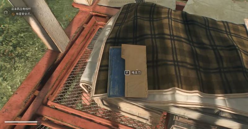 消逝的光芒困獸想獲得電擊刀,要去別墅區(qū)村莊高壓電線桿那。站在旁邊大石頭上助跑起跳,到對面電線桿平臺。接著順著桿往上爬,到紅色平臺有張床,困獸電擊刀就在床的角落位置。