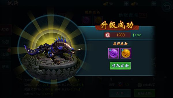 3.戰(zhàn)騎進(jìn)階成功后,將獲得更炫更酷的外型和更加強(qiáng)大的屬性。