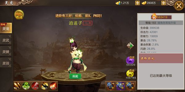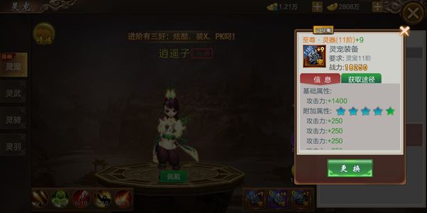 4、靈寵進(jìn)階成功后,將獲得更炫更酷的外型和更加強(qiáng)大的屬性。
