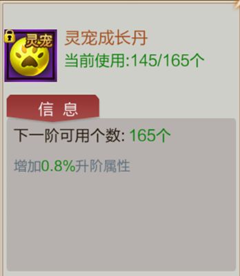 2、靈寵的階數(shù)越高,可喂食的成長丹顆數(shù)越多,同樣每顆成長丹增加的屬性越多;