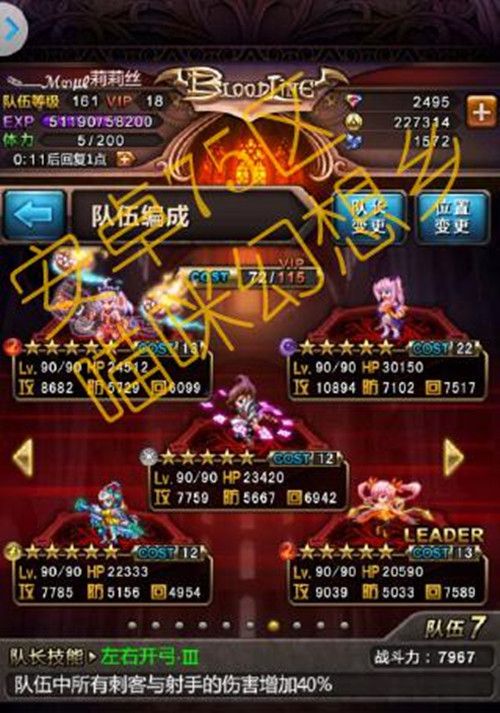 在此隊員搭配陣容中,隊友分別為:50級木影春日、90級三開友美、90級三開狩、90級未開靈兒和70級的一開黛絲。這個陣容與上個陣容相比,雖奶量較低,黛絲的抵抗力也稍弱,但是由于隊伍中有狩的加入,可以用狩作為肉盾,黛絲作為輔助的奶媽角色。