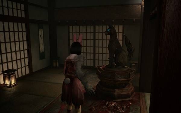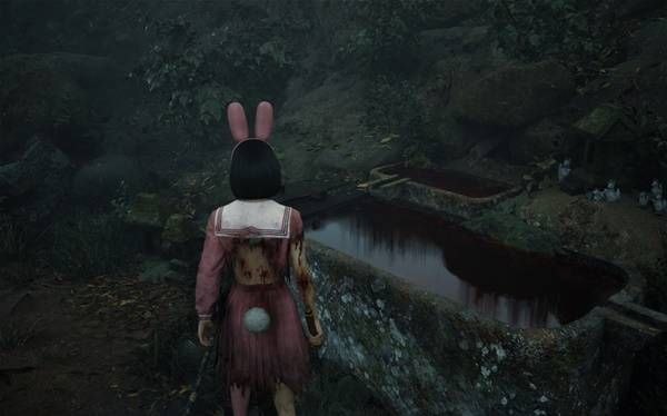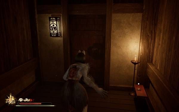 在參道,返回神社尋找大門密碼時(shí)會(huì)首次遇到新敵人并觸發(fā)戰(zhàn)斗。從戰(zhàn)斗觸發(fā)開始直至完成繪馬解謎打開大門期間、需要保持不受到任何傷害。該怪物沒有視力,保持距離走就不會(huì)被發(fā)現(xiàn)。