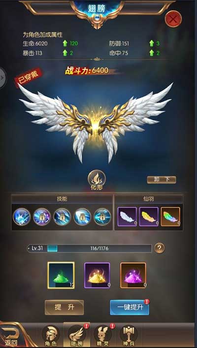 1. 翅膀:翅膀的裝備能提升玩家角色的屬性加成;