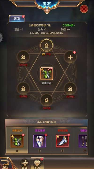 1. 寶石鑲嵌:得到寶石之后,可以將寶石鑲嵌到有鑲嵌孔的裝備上。鑲嵌之后,寶石的屬性可以疊加到裝備的屬性之上。