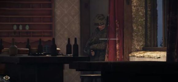 2、匿身草叢,尋覓有利視角,潛伏其中,逐個狙擊內外敵人,誘使Coste現(xiàn)身。
