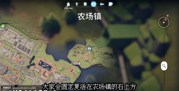 在農(nóng)場(chǎng)鎮(zhèn),玩家會(huì)固定復(fù)活在右上方。