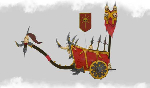 - 由恐虐信徒們駕馭的戈?duì)柅F戰(zhàn)車,不斷地在狩獵與殺戮中維持瘋狂。